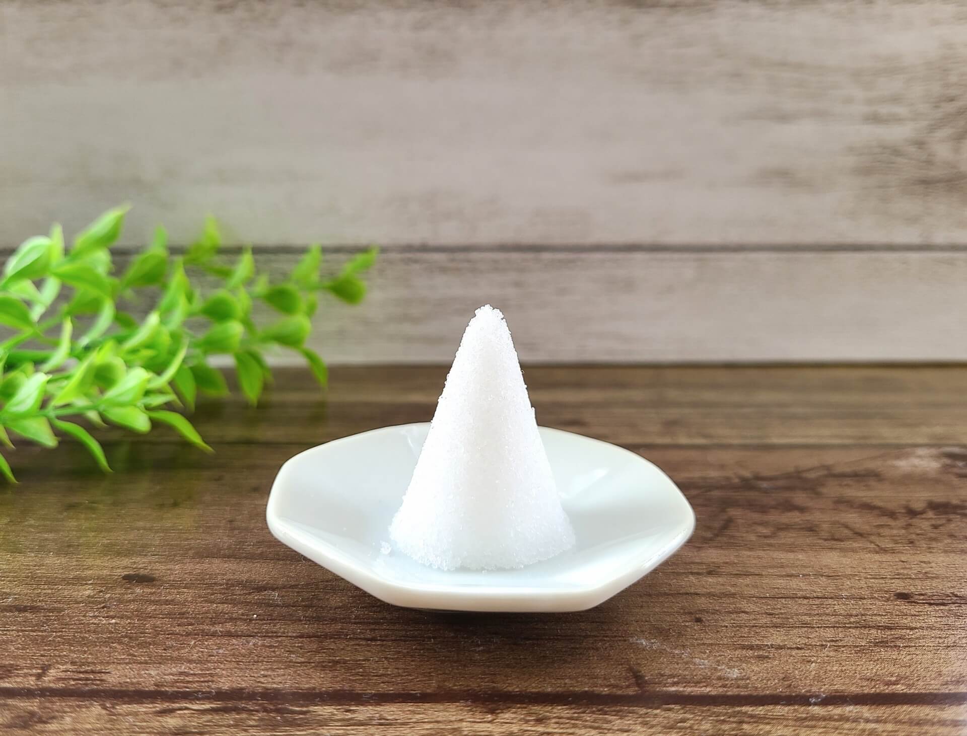 盛り塩の形は、三角形に盛るのが一般的です。